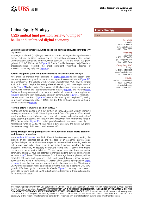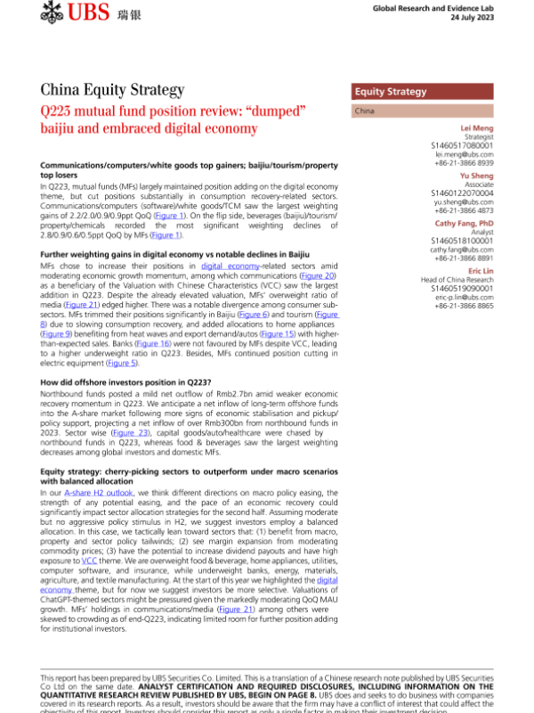 【UBS Securities Co. Limited】【20230724】Q223 mutual fund position review “dumped” baijiu and embraced digital economy-12页