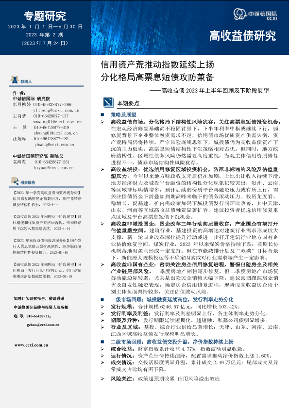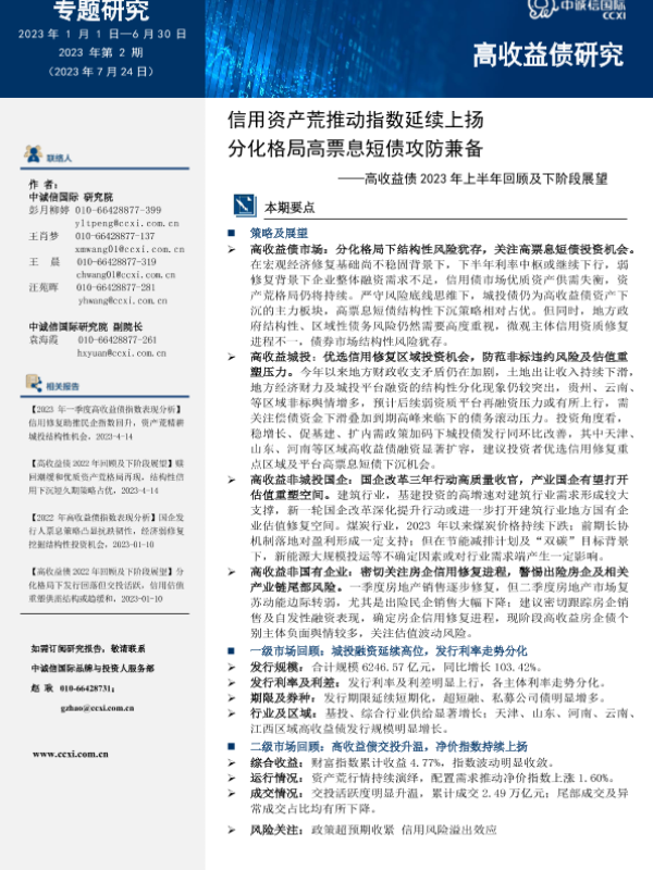 【中诚信国际】【20230724】信用资产荒推动指数延续上扬,分化格局高票息短债攻防兼备-16页