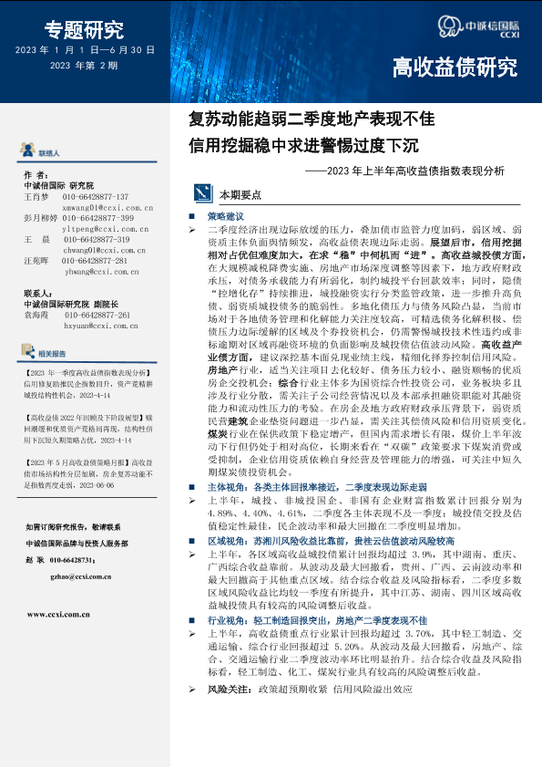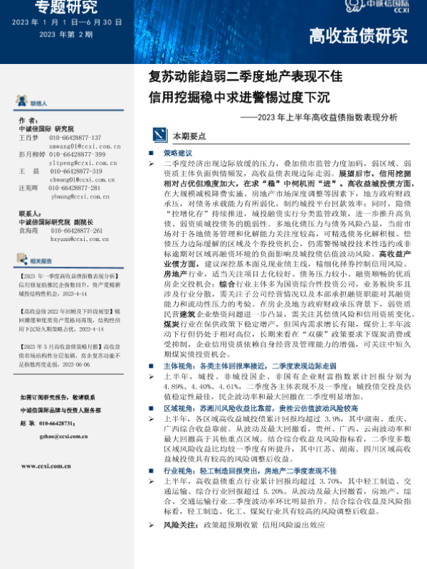 【中诚信国际】【20230630】复苏动能趋弱二季度地产表现不佳,信用挖掘稳中求进警惕过度下沉-11页