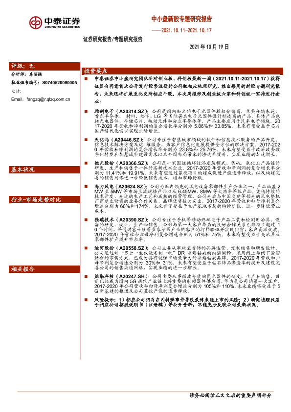 【中泰证券】【20211019】中小盘新股专题研究报告-31页