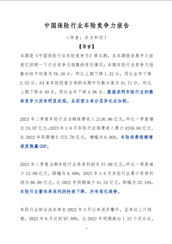【东方和讯】【20230630】2023年上半年车险竞争力报告-27页