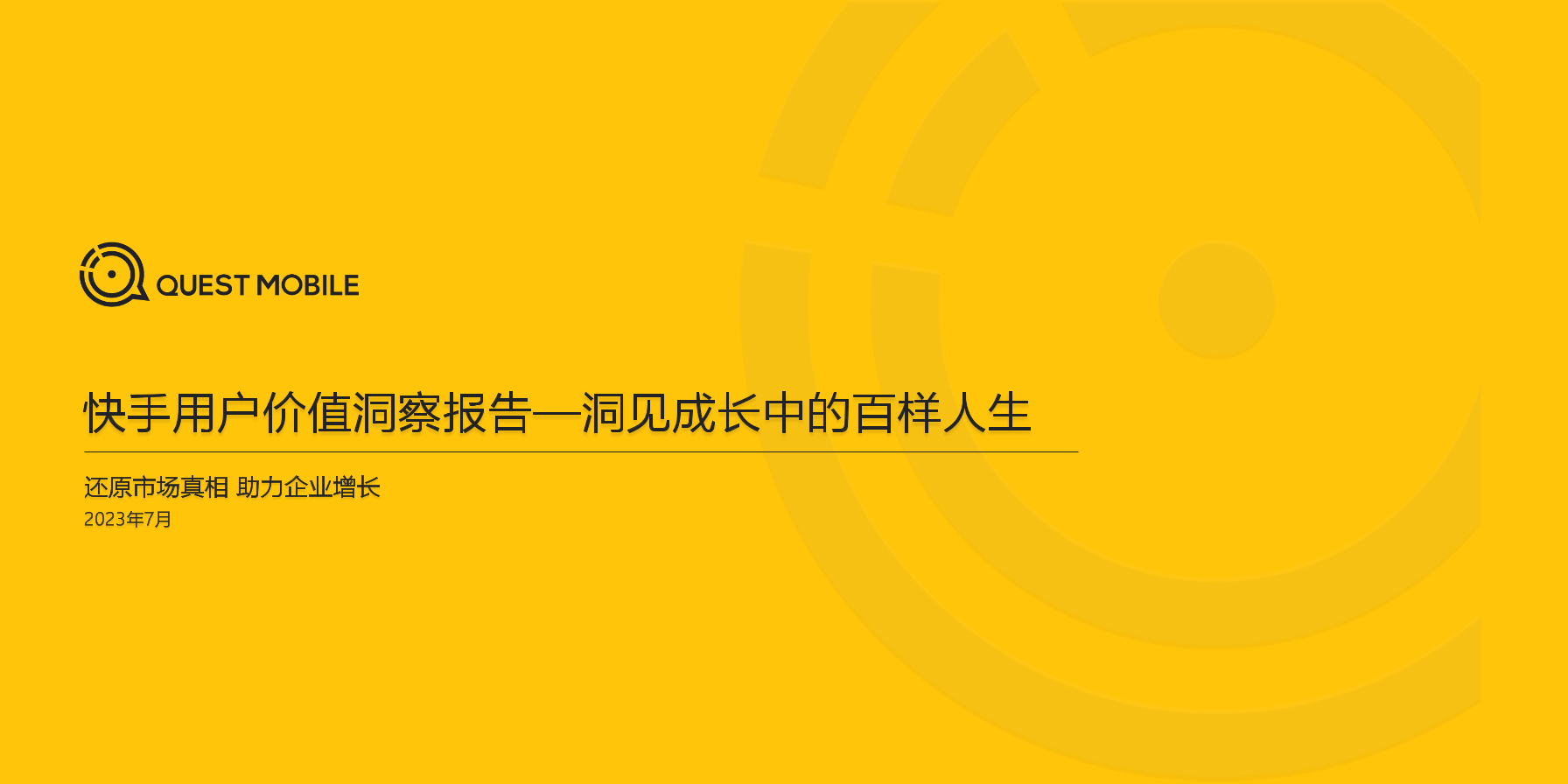 【QuestMobile】【202307】2023快手用户价值洞察报告-洞见成长中的百样人生-48页