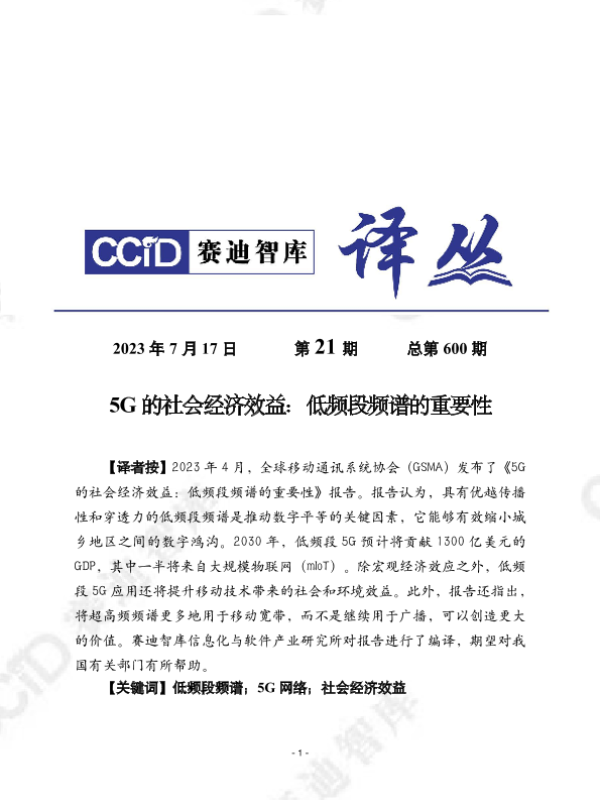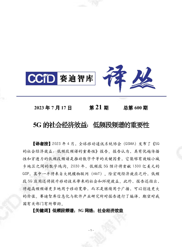 5G网络 低频段频谱 数字平等 物联网 社会经济效益