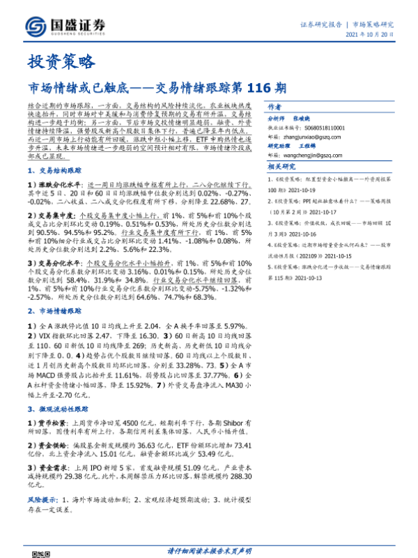 【国盛证券】【20211020】交易情绪跟踪第116期:市场情绪或已触底-15页