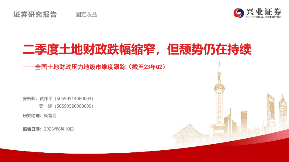 【兴业证券】【20230810】全国土地财政压力地级市维度跟踪(截至23年Q2):二季度土地财政跌幅缩窄,但颓势仍在持续-124页