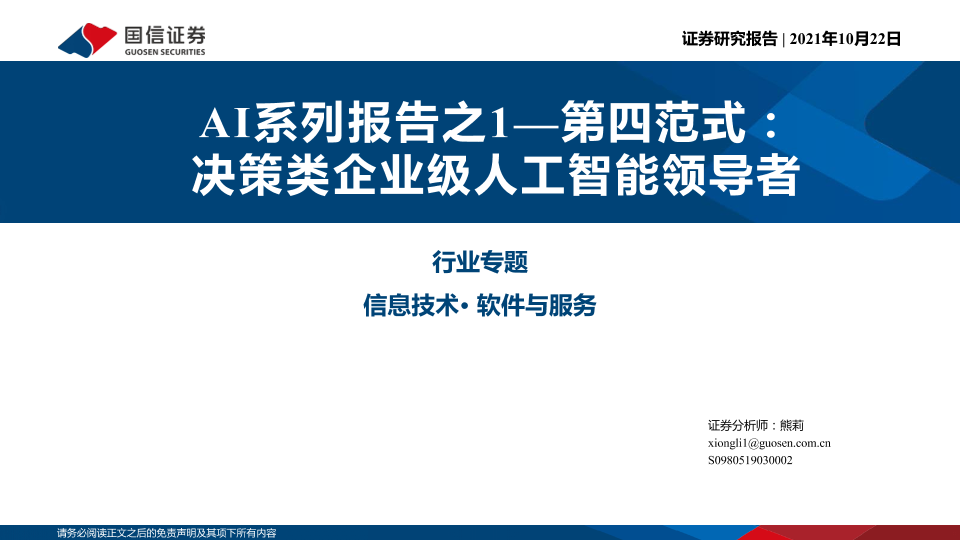 【国信证券】【20211022】信息技术行业AI系列报告之1-第四范式:决策类企业级人工智能领导者-33页