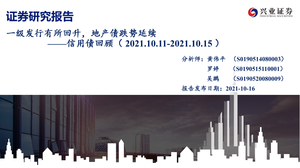【兴业证券】【20211016】信用债回顾:一级发行有所回升,地产债跌势延续-40页