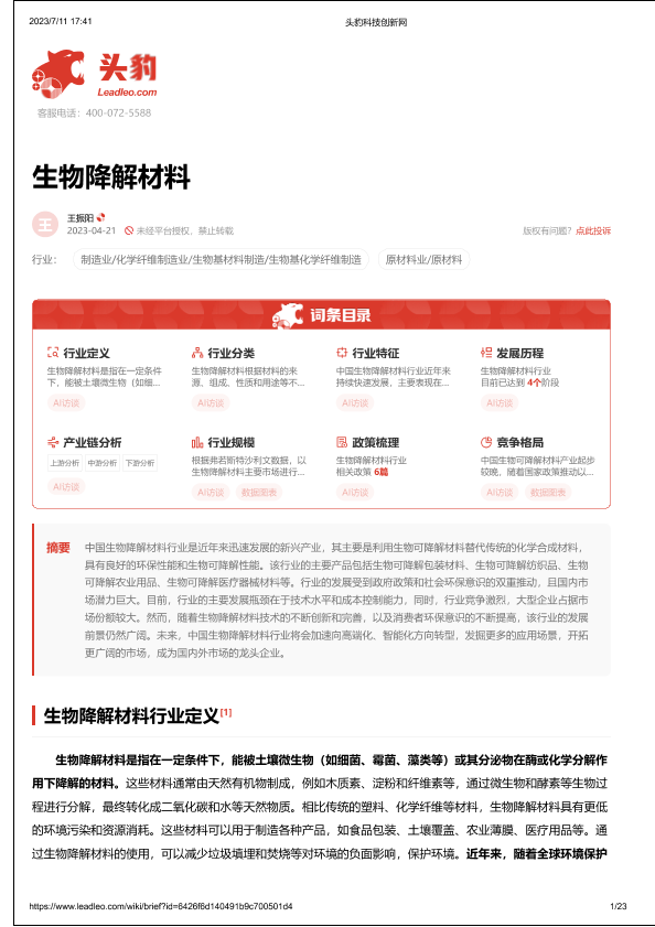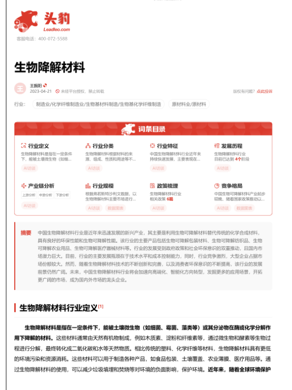 【头豹研究院】【20230809】生物降解材料 头豹词条报告系列-23页