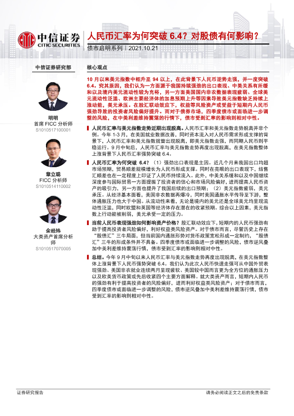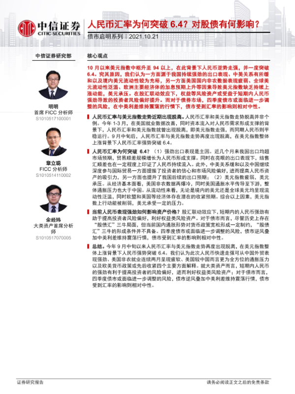 【中信证券】【20211021】债市启明系列:人民币汇率为何突破6.4?对股债有何影响?-30页