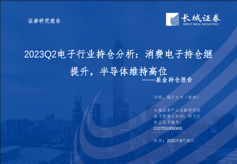 【长城证券】【20230810】2023Q2电子行业持仓分析:基金持仓报告,消费电子持仓继提升,半导体维持高位-25页