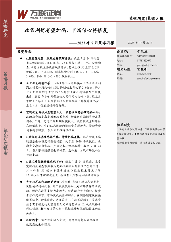 【万联证券】【20230727】2023年7月策略月报:政策利好有望加码,市场信心将修复-16页