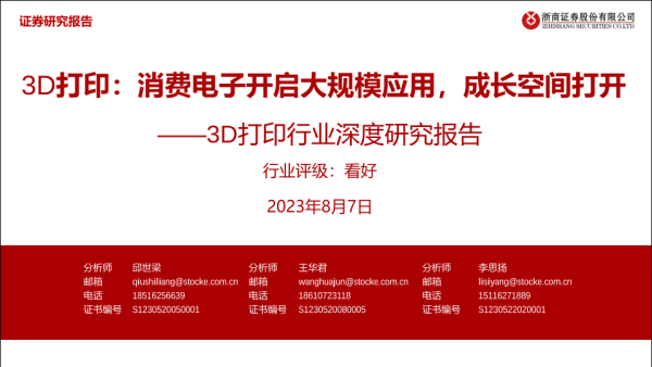【浙商证券】【20230807】3D打印:消费电子开启大规模应用,成长空间打开-41页
