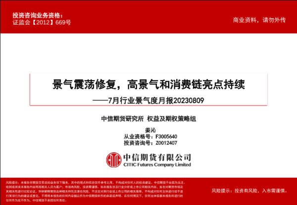 【中信期货】【20230809】7月行业景气度月报:景气震荡修复,高景气和消费链亮点持续-61页