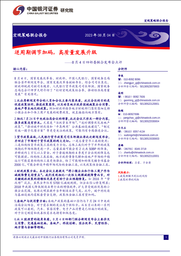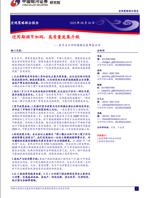 【银河证券】【20230804】8月4日四部委联合发布会点评:逆周期调节加码,高质量发展升级-22页