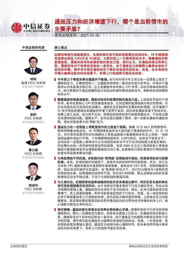 【中信证券】【20211018】债市启明系列:通胀压力和经济增速下行,哪个是当前债市的主要矛盾?-27页