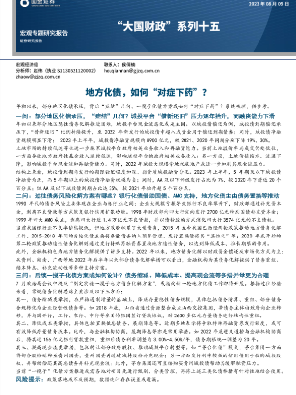 【国金证券】【20230809】“大国财政”系列十五:地方化债,如何“对症下药”?-16页