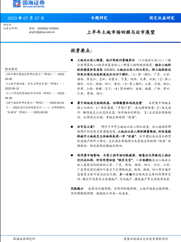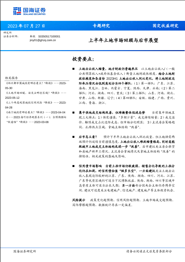 【国海证券】【20230727】上半年土地市场回顾与后市展望-16页