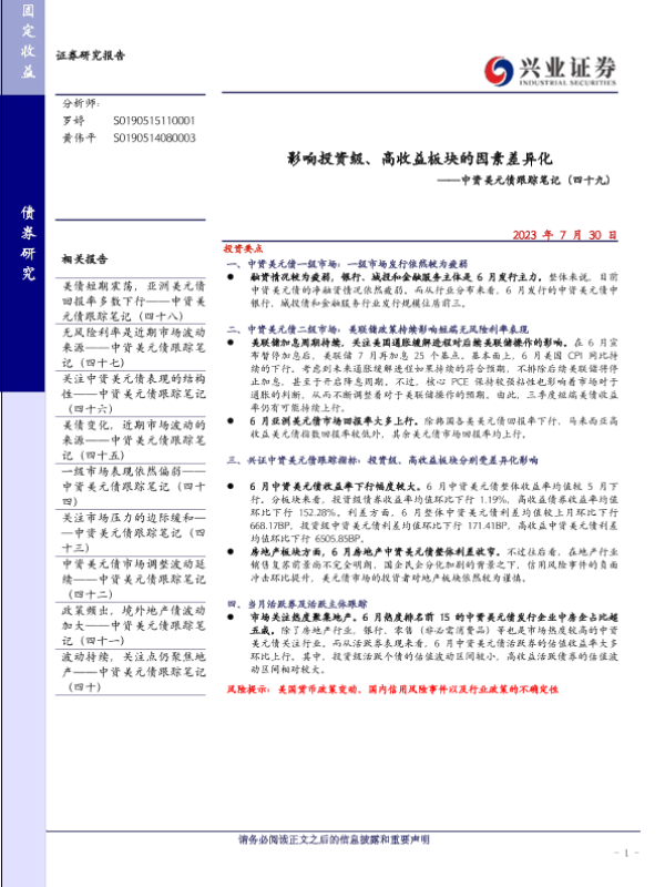 【兴业证券】【20230730】影响投资级、高收益板块的因素差异化-18页