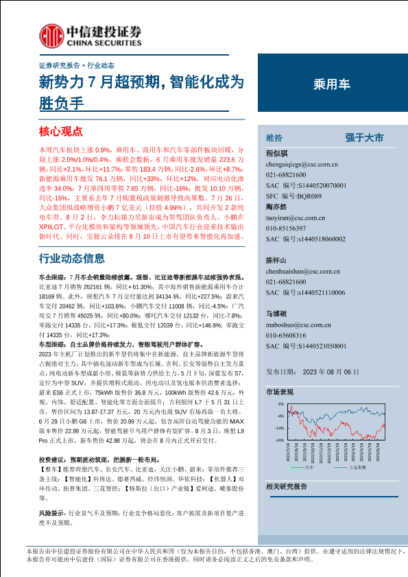 【中信建投证券】【20230806】乘用车行业:新势力7月超预期,智能化成为胜负手-17页