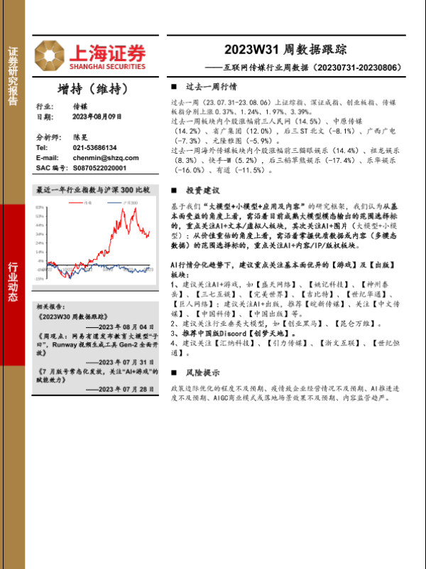 【上海证券】【20230809】互联网传媒行业周数据:2023W31周数据跟踪-19页