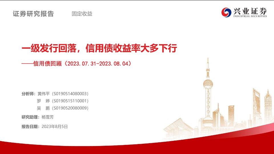 【兴业证券】【20230805】信用债回顾:一级发行回落,信用债收益率大多下行-37页