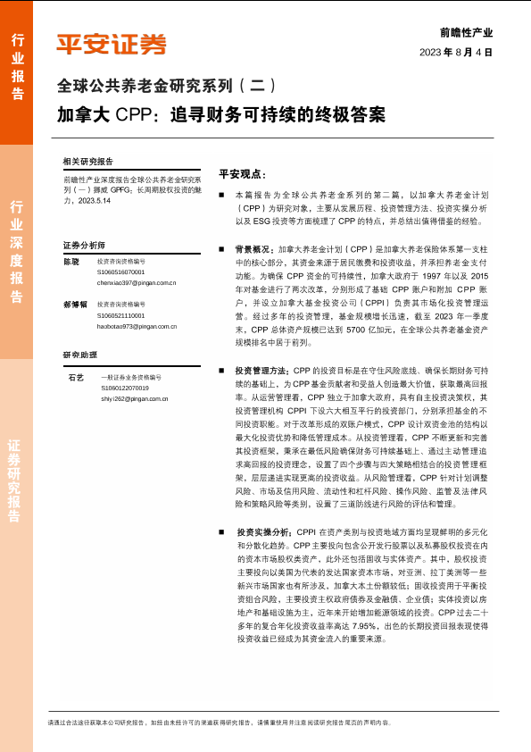 【平安证券】【20230804】前瞻性产业行业全球公共养老金研究系列(二):加拿大CPP,追寻财务可持续的终极答案-37页