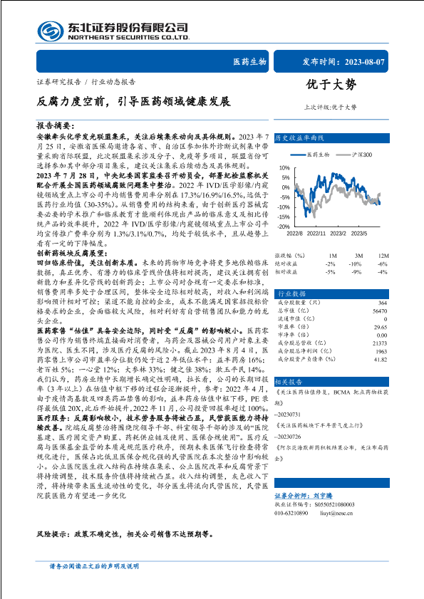 【东北证券】【20230807】医药生物行业:反腐力度空前,引导医药领域健康发展-18页