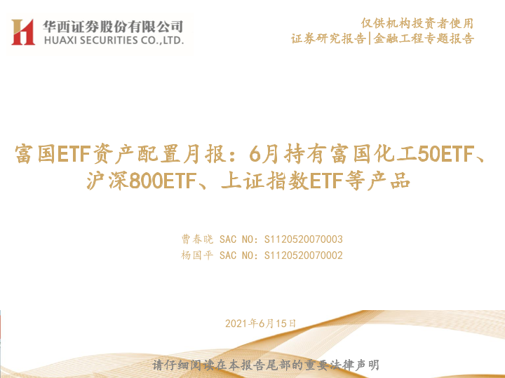 【华西证券】【20210615】富国ETF资产配置月报:6月持有富国化工50ETF、沪深800ETF、上证指数ETF等产品-23页