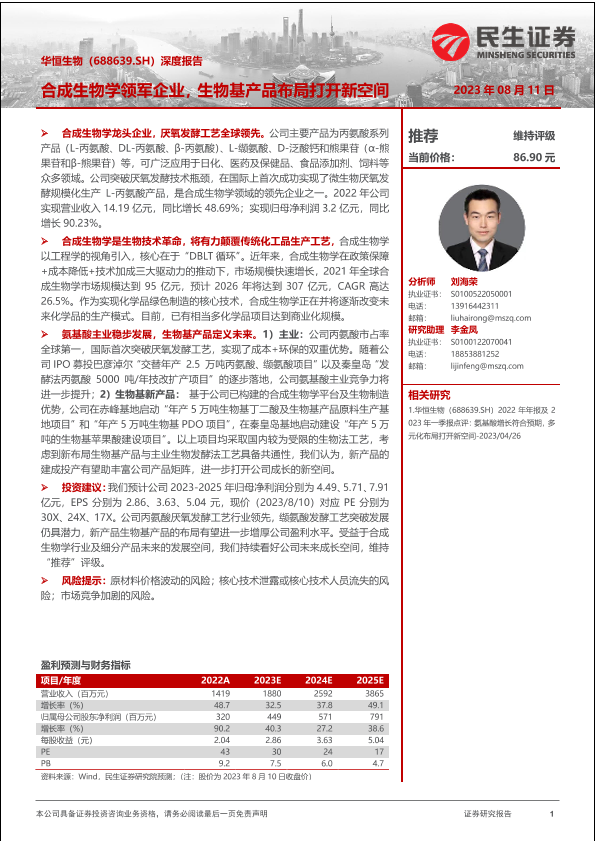 【民生证券】【20230811】华恒生物(688639)深度报告:合成生物学领军企业,生物基产品布局打开新空间-53页