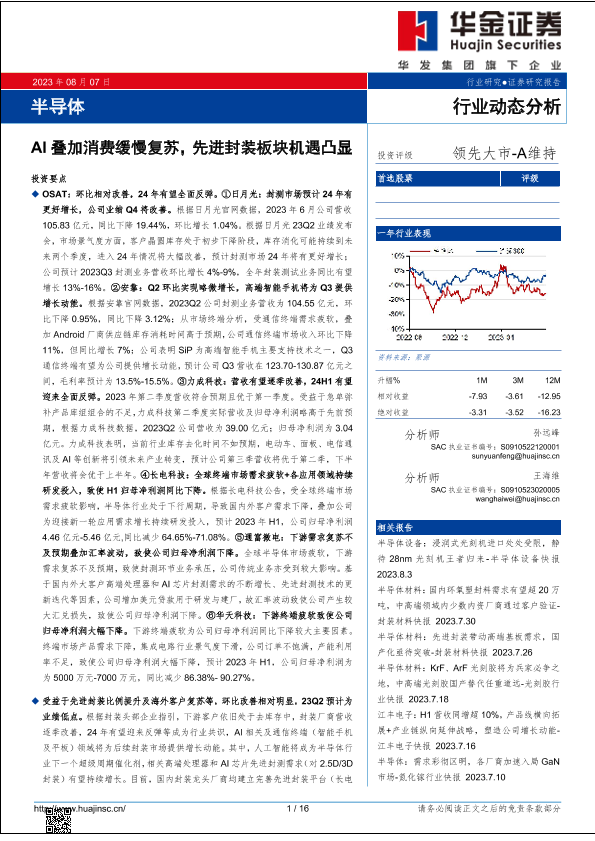 【华金证券】【20230807】半导体行业:AI叠加消费缓慢复苏,先进封装板块机遇凸显-16页