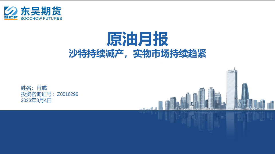 【东吴期货】【20230804】原油月报:沙特持续减产,实物市场持续趋紧-86页