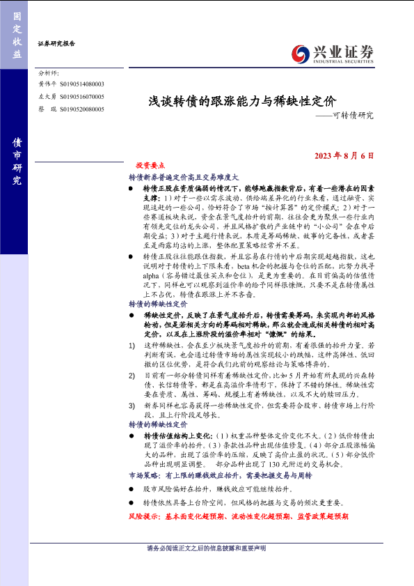 【兴业证券】【20230806】浅谈转债的跟涨能力与稀缺性定价——可转债研究-20页