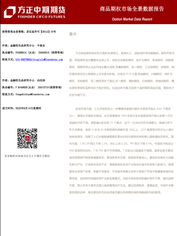 【方正中期期货】【20230810】商品期权市场全景数据报告-101页