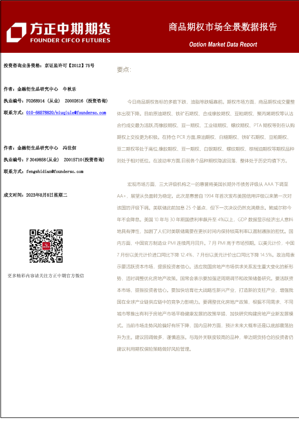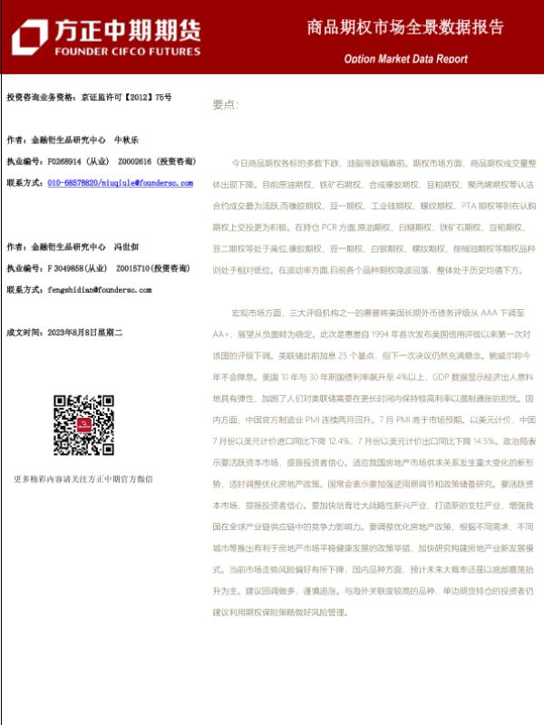 【方正中期期货】【20230808】商品期权市场全景数据报告-101页