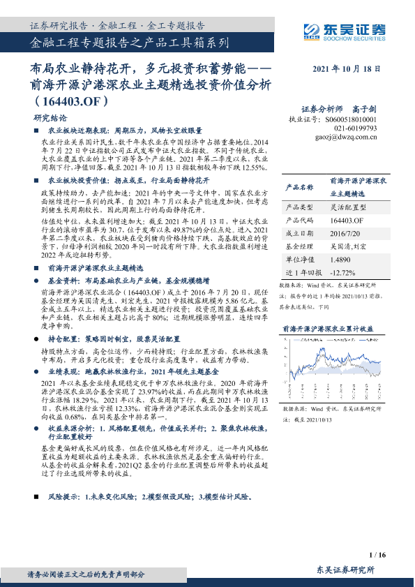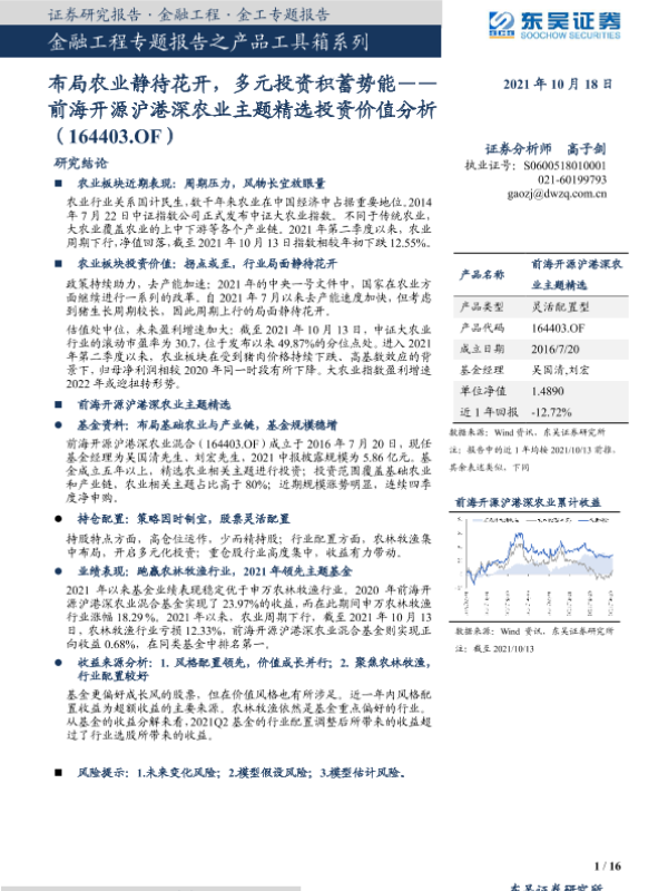【东吴证券】【20211018】前海开源沪港深农业主题精选投资价值分析:布局农业静待花开,多元投资积蓄势能-16页