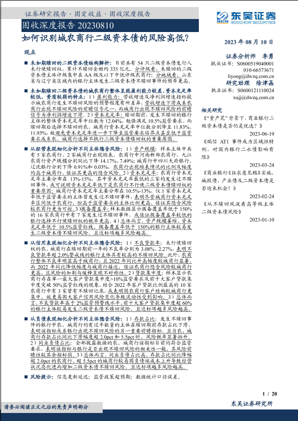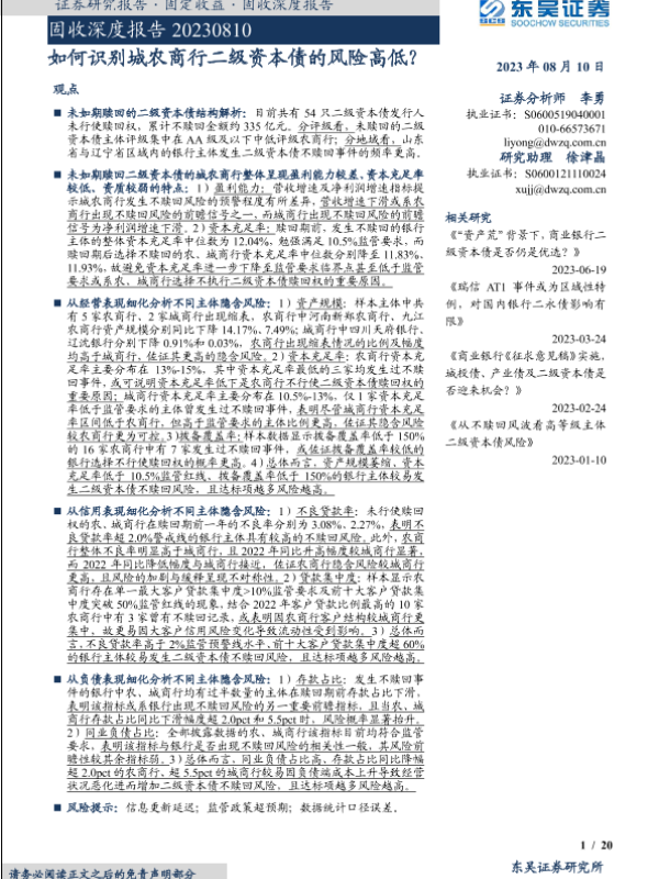 【东吴证券】【20230810】如何识别城农商行二级资本债的风险高低?-20页