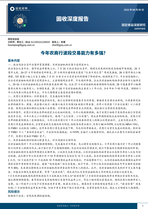 【国金证券】【20230805】今年农商行波段交易能力有多强?-23页