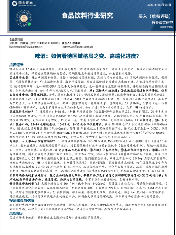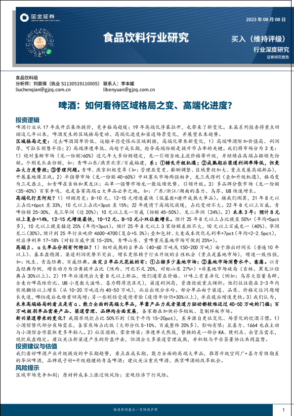 【国金证券】【20230101】国金证券:食品饮料行业深度研究-啤酒-如何看待区域格局之变、高端化进度?-20页