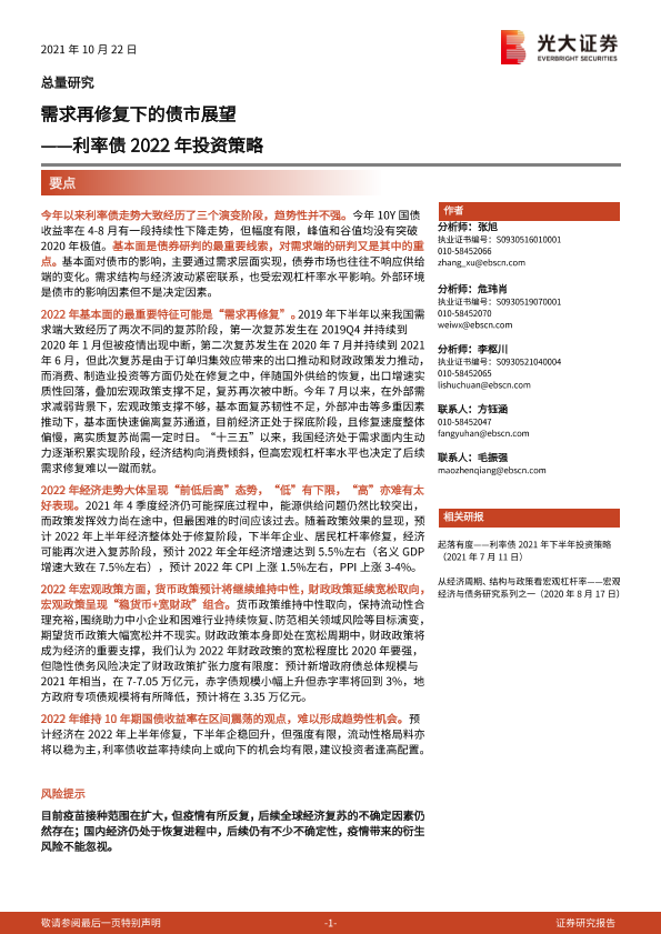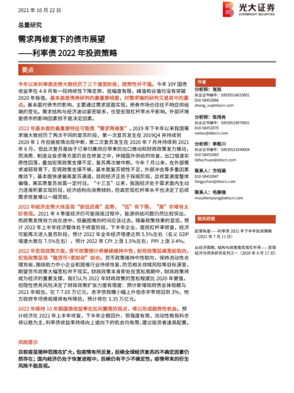 【光大证券】【20211022】利率债2022年投资策略:需求再修复下的债市展望-45页
