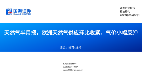 【国海证券】【20230806】天然气行业半月报:欧洲天然气供应环比收紧,气价小幅反弹-29页