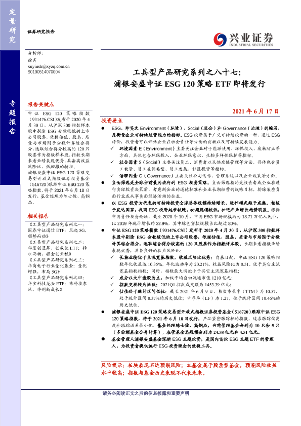 【兴业证券】【20210617】工具型产品研究系列之八十七:浦银安盛中证ESG_120策略ETF即将发行-14页