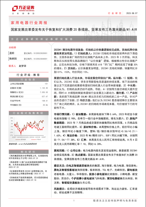 【方正证券】【20230807】家用电器行业周报:国家发展改革委发布关于恢复和扩大消费20条措施,坚果发布三色激光新品N1:AIR-24页