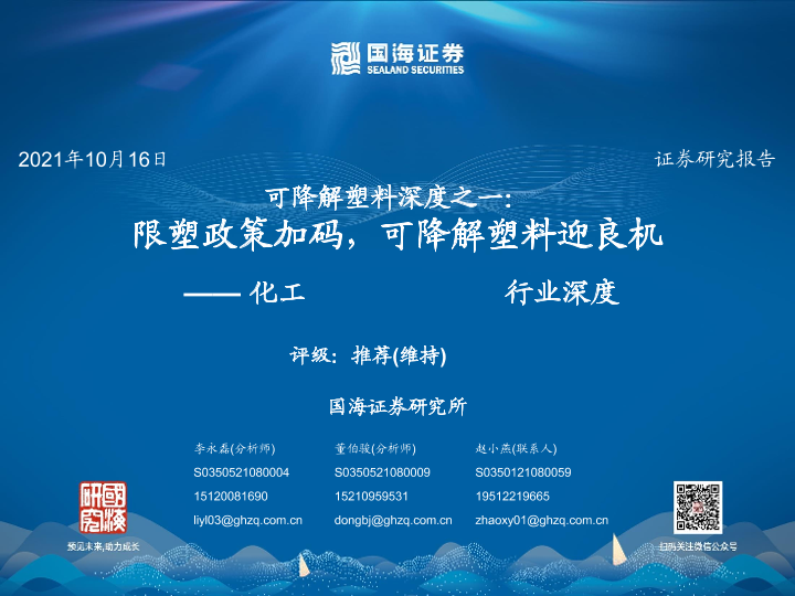 【国海证券】【20211016】化工行业深度:可降解塑料深度之一,限塑政策加码,可降解塑料迎良机-61页