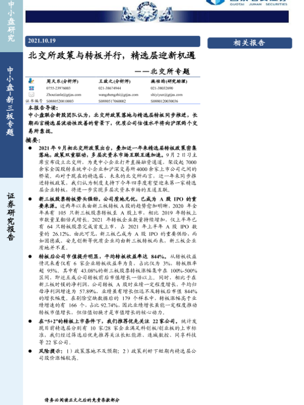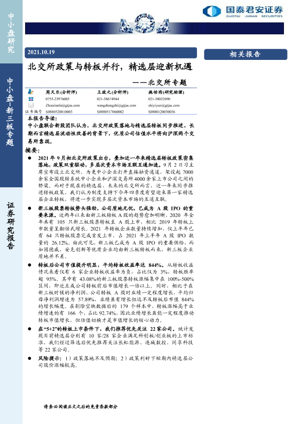 【国泰君安证券】【20211019】北交所政策与转板并行,精选层迎新机遇-21页