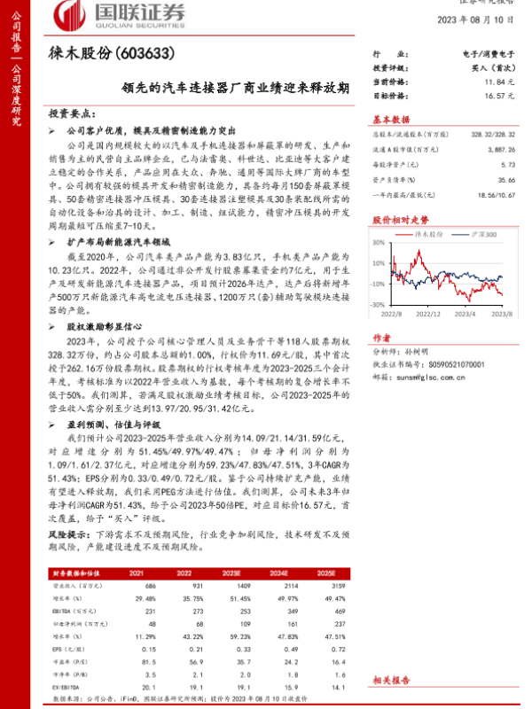 业绩预测 新能源汽车 汽车连接器 精密制造 股权激励