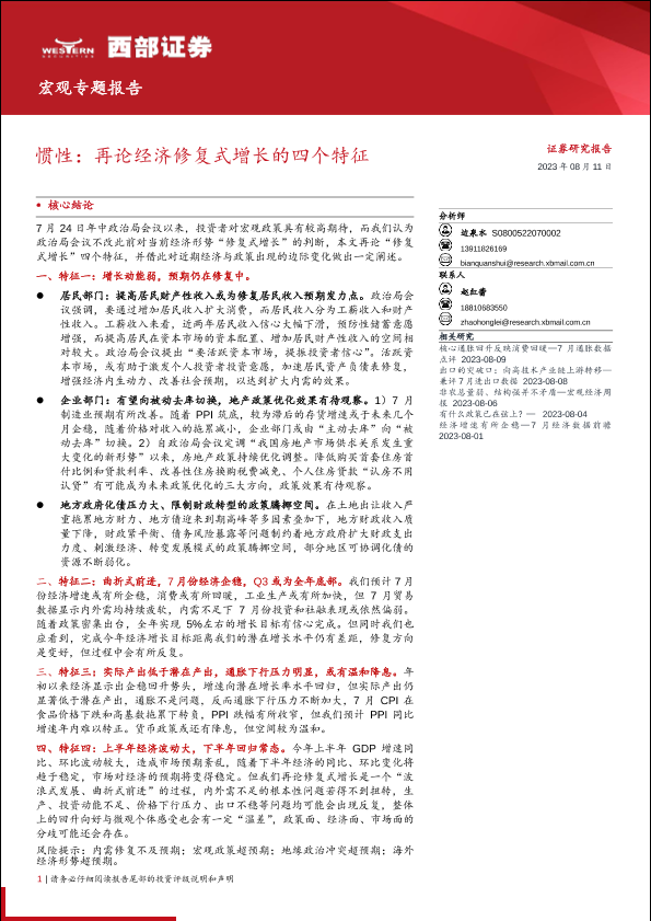 【西部证券】【20230811】惯性:再论经济修复式增长的四个特征-20页