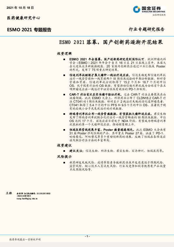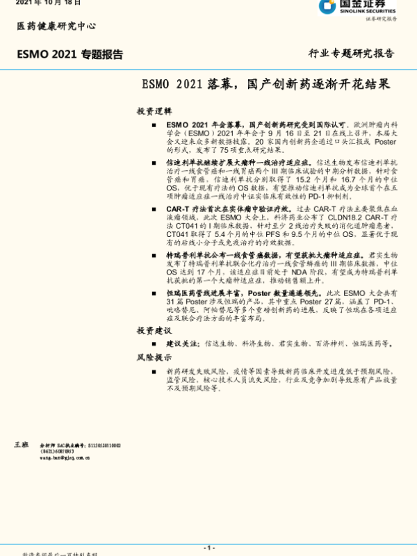 【国金证券】【20211018】医药健康行业ESMO2021专题报告:ESMO2021落幕,国产创新药逐渐开花结果-19页
