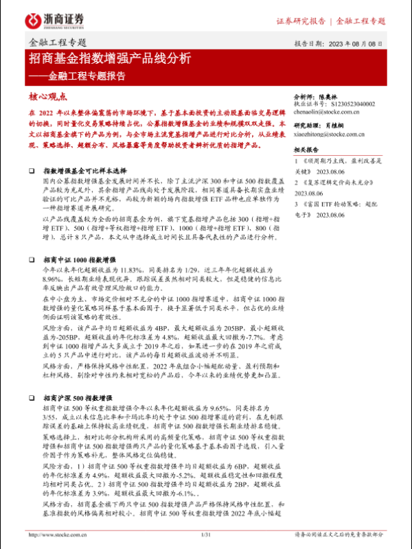 【浙商证券】【20230808】招商基金指数增强产品线分析-31页