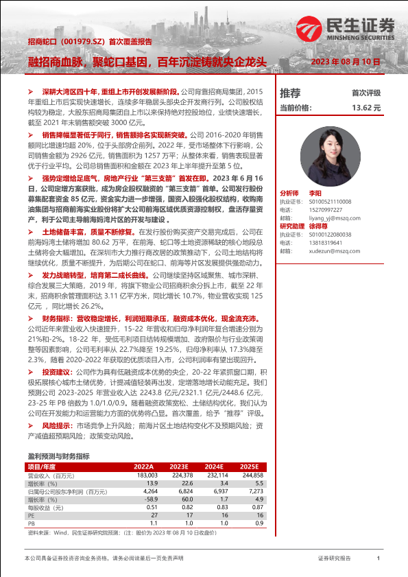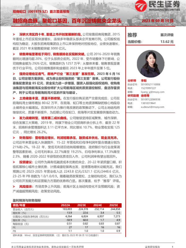 【民生证券】【20230810】招商蛇口(001979)首次覆盖报告:融招商血脉,聚蛇口基因,百年沉淀铸就央企龙头-39页