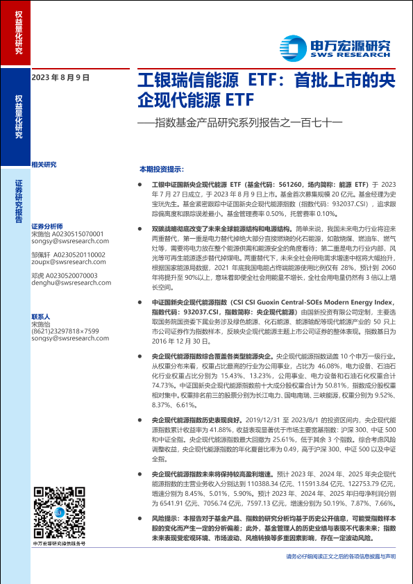 【申万宏源】【20230809】指数基金产品研究系列报告之一百七十一:工银瑞信能源ETF,首批上市的央企现代能源ETF-35页